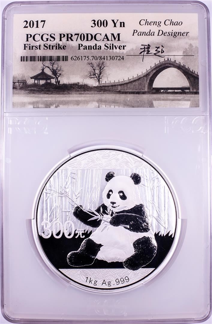One 2017 China 300 Yuan Proof 1 Kilo Silver Panda Coin PCGS PR70DCAM FS Chao Signed. PCGS Graded.