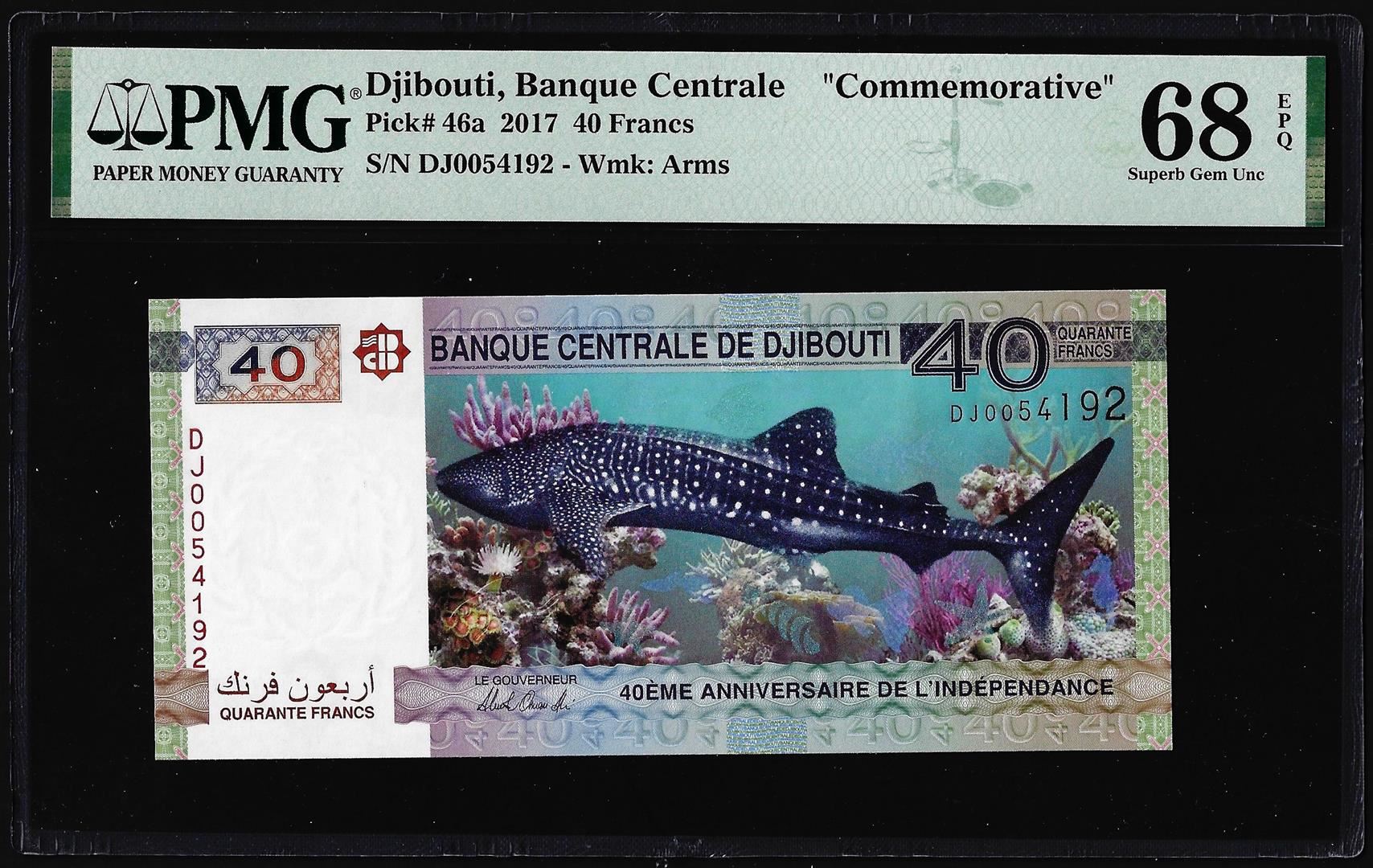 2017 Djibouti Central Bank 40 Francs Note Pick# 46a PMG Superb Gem Uncirculated 68EPQ