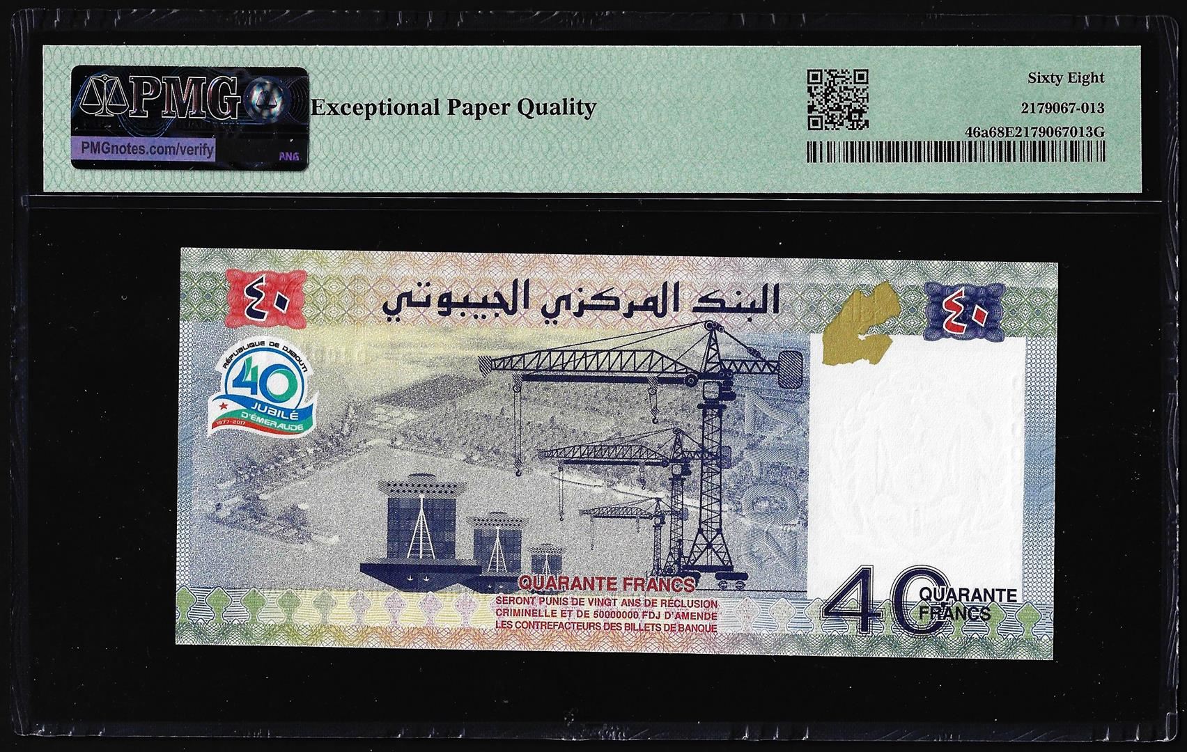 2017 Djibouti Central Bank 40 Francs Note Pick# 46a PMG Superb Gem Uncirculated 68EPQ