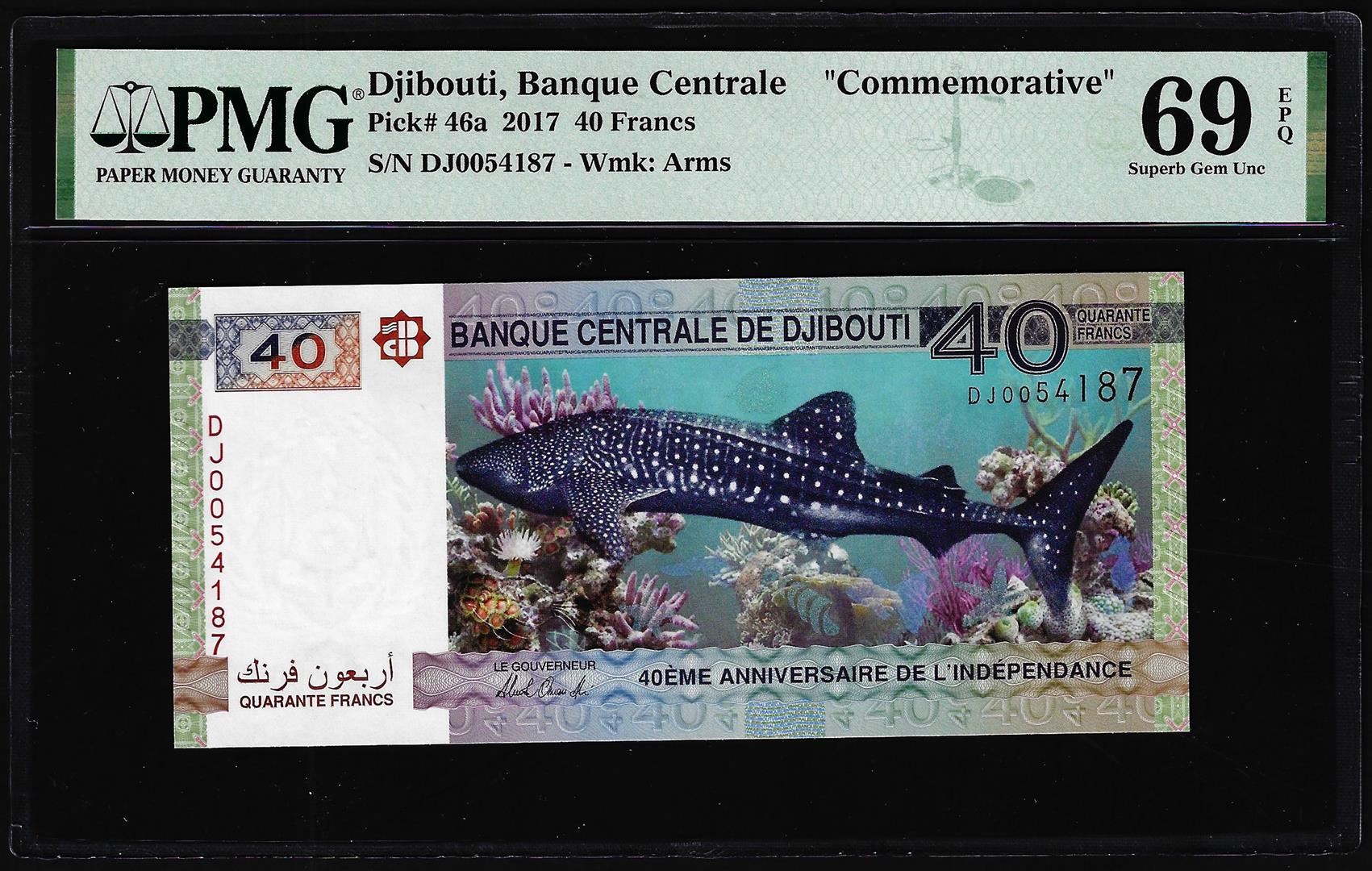 2017 Djibouti Central Bank 40 Francs Note Pick# 46a PMG Superb Gem Uncirculated 69EPQ