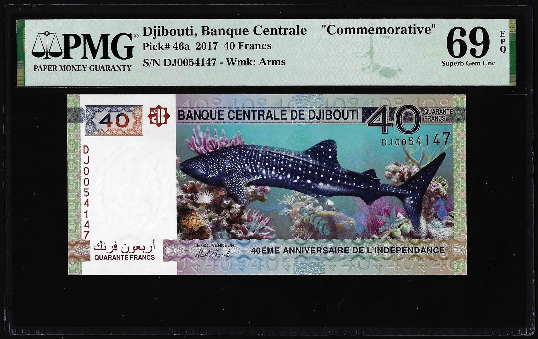2017 Djibouti Central Bank 40 Francs Note Pick# 46a PMG Superb Gem Uncirculated 69EPQ