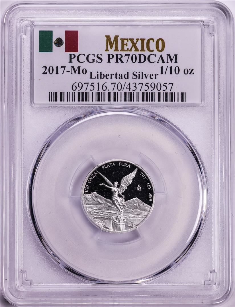One 2017-Mo Mexico Proof 1/10 oz Silver Libertad Coin PCGS PR70DCAM. PCGS Graded.