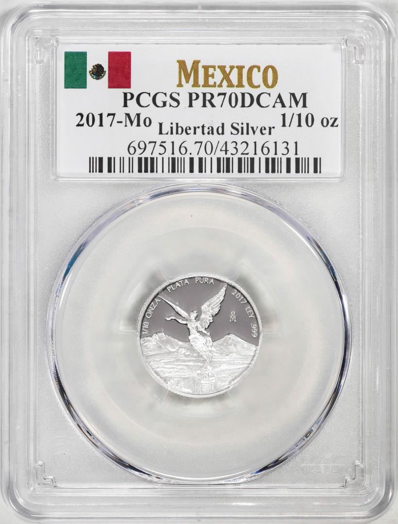 One 2017-Mo Mexico Proof 1/10 oz Silver Libertad Coin PCGS PR70DCAM. PCGS Graded.