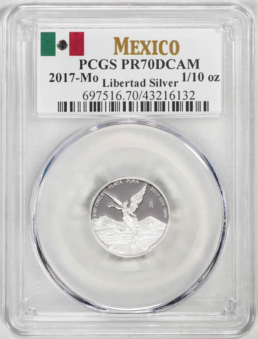 One 2017-Mo Mexico Proof 1/10 oz Silver Libertad Coin PCGS PR70DCAM. PCGS Graded.