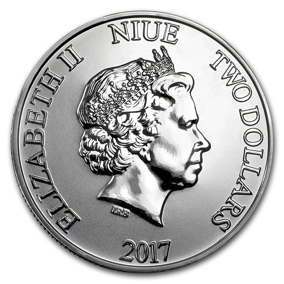One 2017 Niue $2 Star Wars Darth Vader Silver Coin.