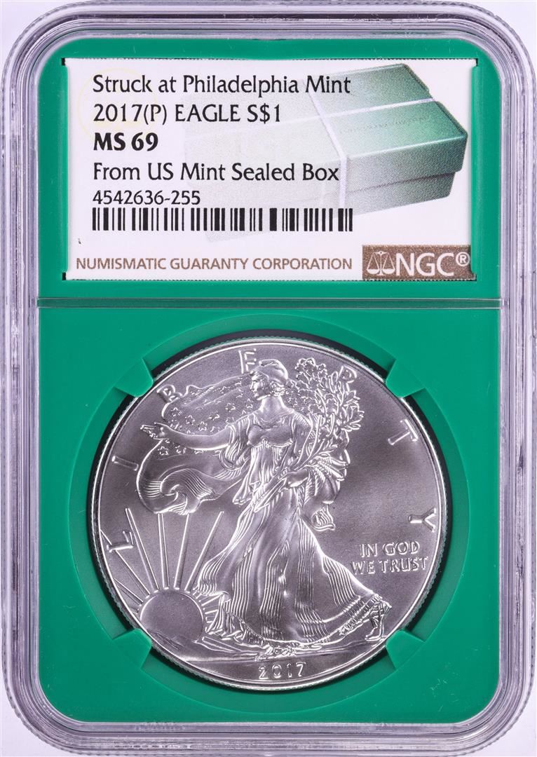 2017(P) $1 American Silver Eagle Coin NGC MS69 from Philadelphia Mint Sealed Box