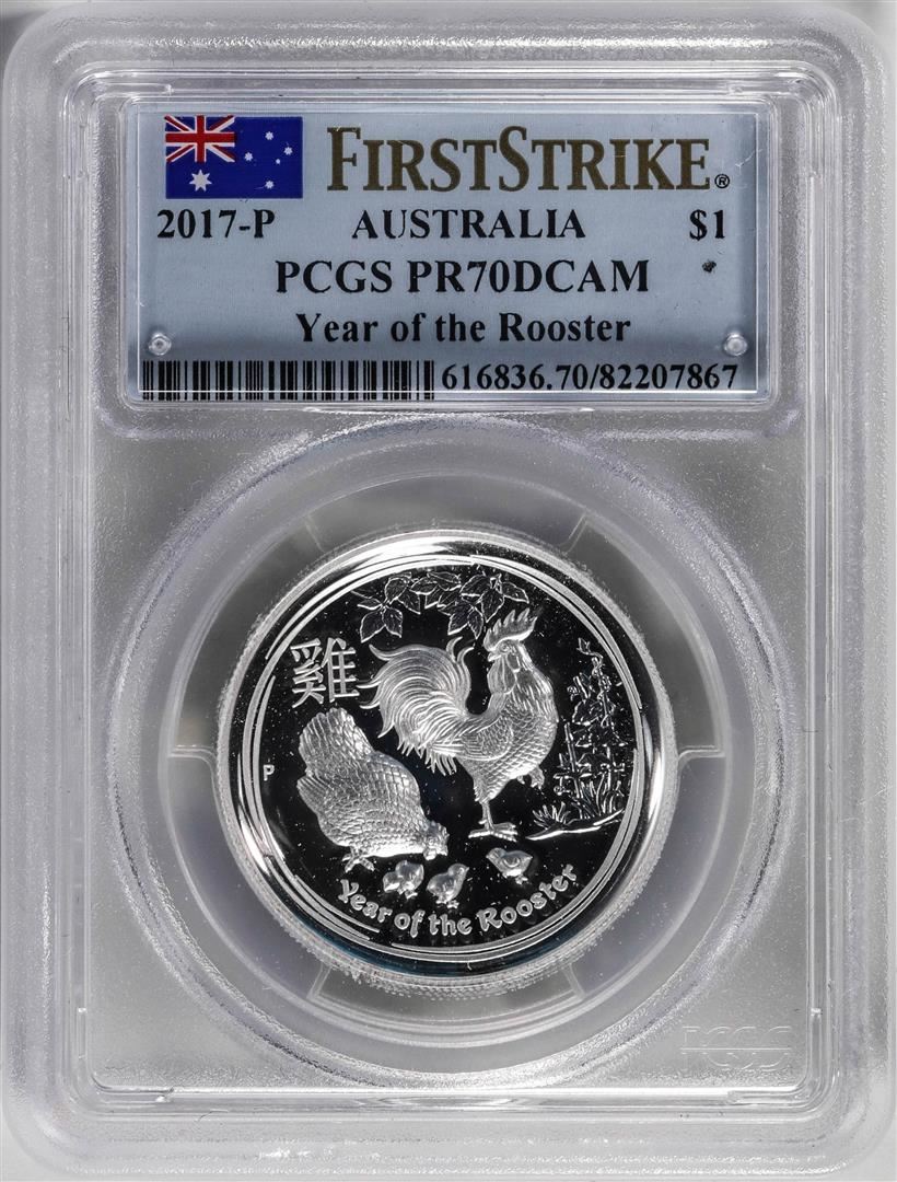 2017-P $1 Australia Proof Year of the Rooster Silver Coin PCGS PR70DCAM First Strike