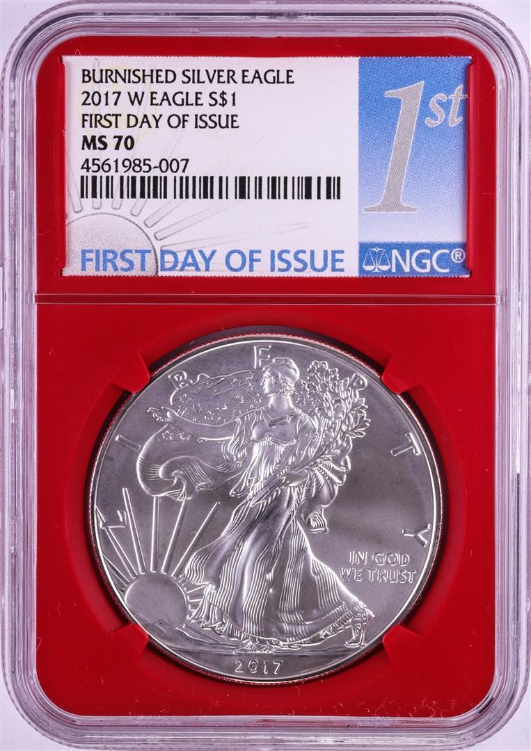 2017-W $1 Burnished American Silver Eagle Coin NGC MS70 First Day of Issue