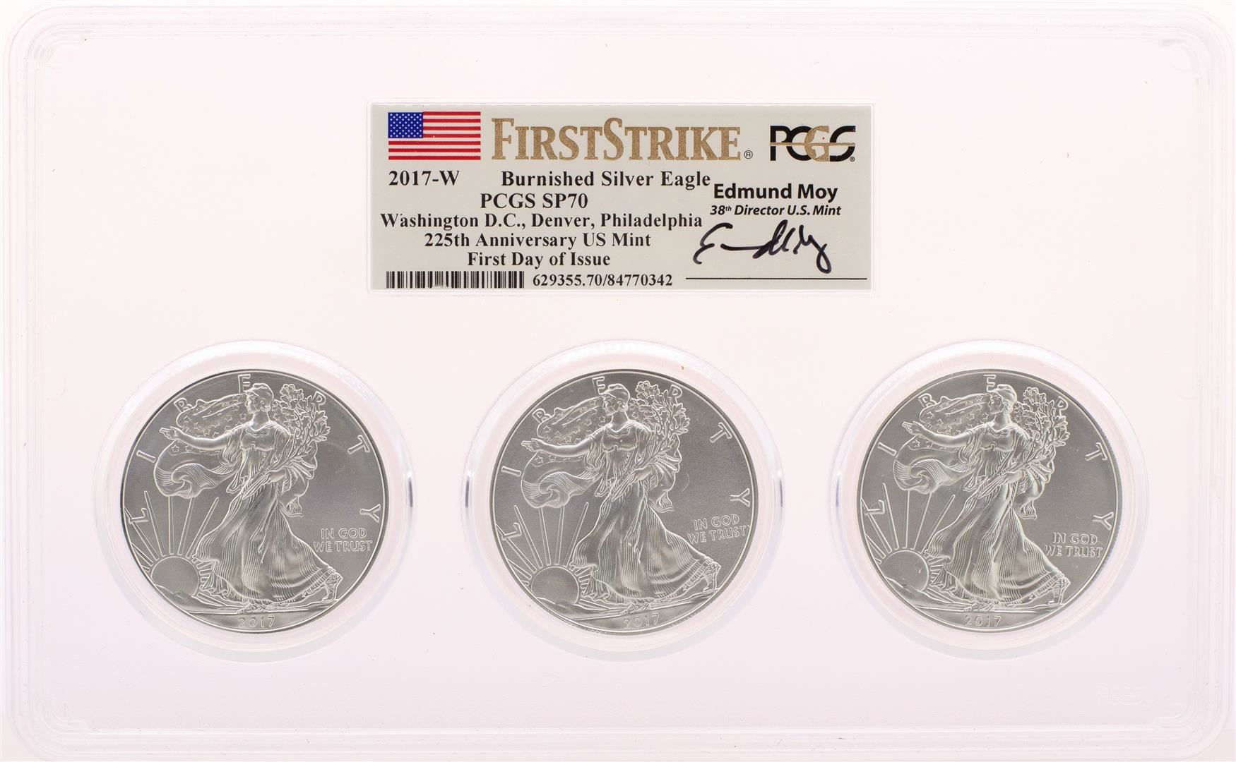 One 2017-W Burnished Silver Eagle Location Set PCGS SP70 First Strike Edmund Moy Signature. PCGS Graded.