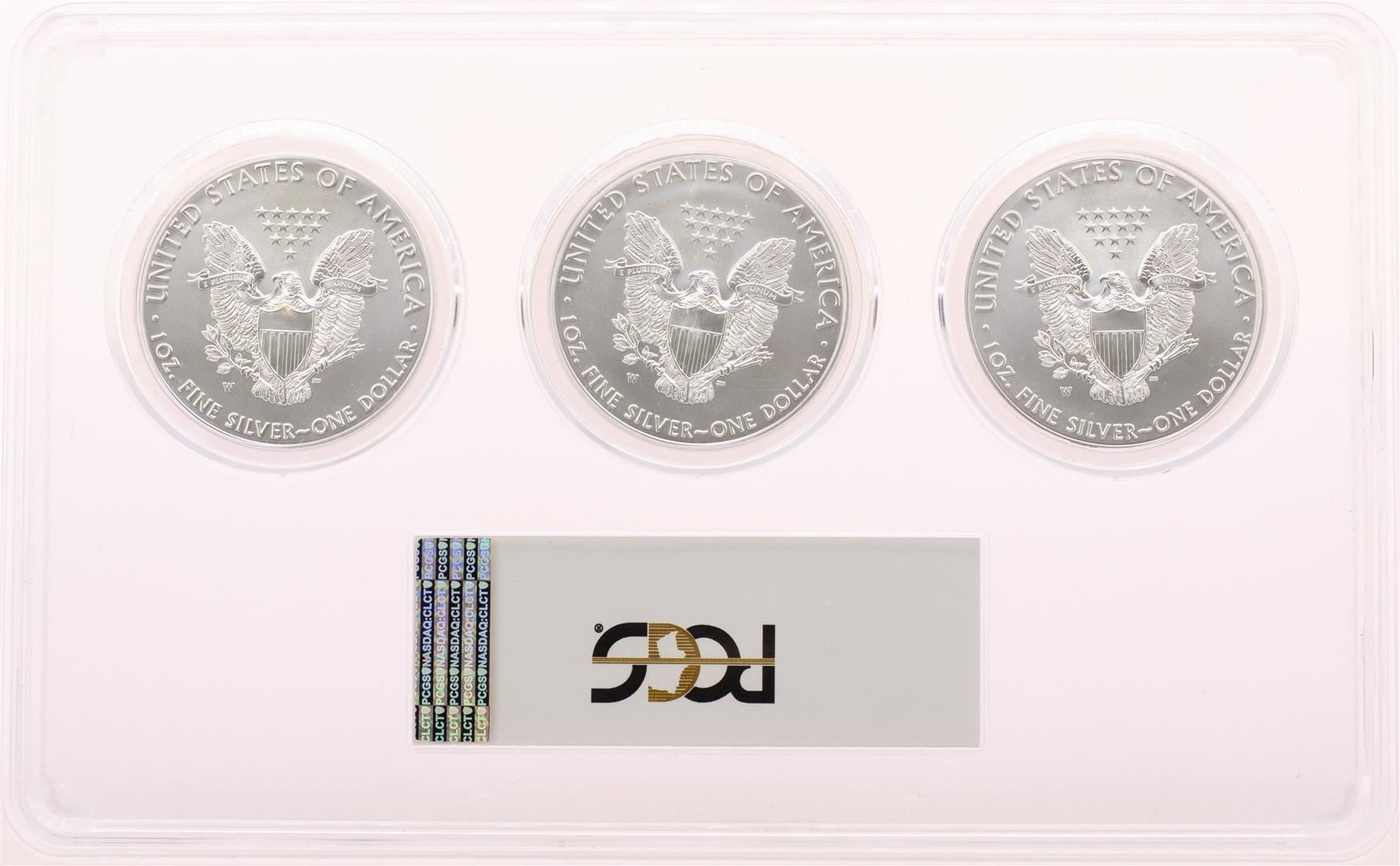 2017-W Burnished Silver Eagle Location Set PCGS SP70 First Strike Edmund Moy Signature