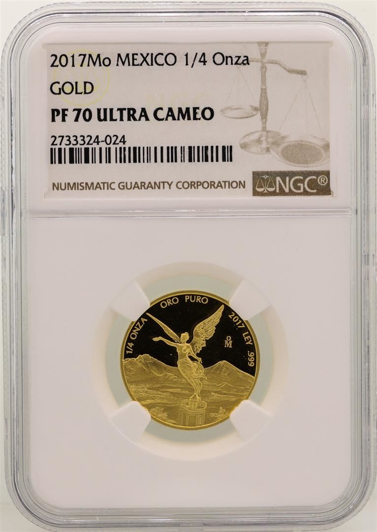 One 2017MO Mexico 1/4 Onza Gold Coin NGC PF70 Ultra Cameo. NGC Certified.