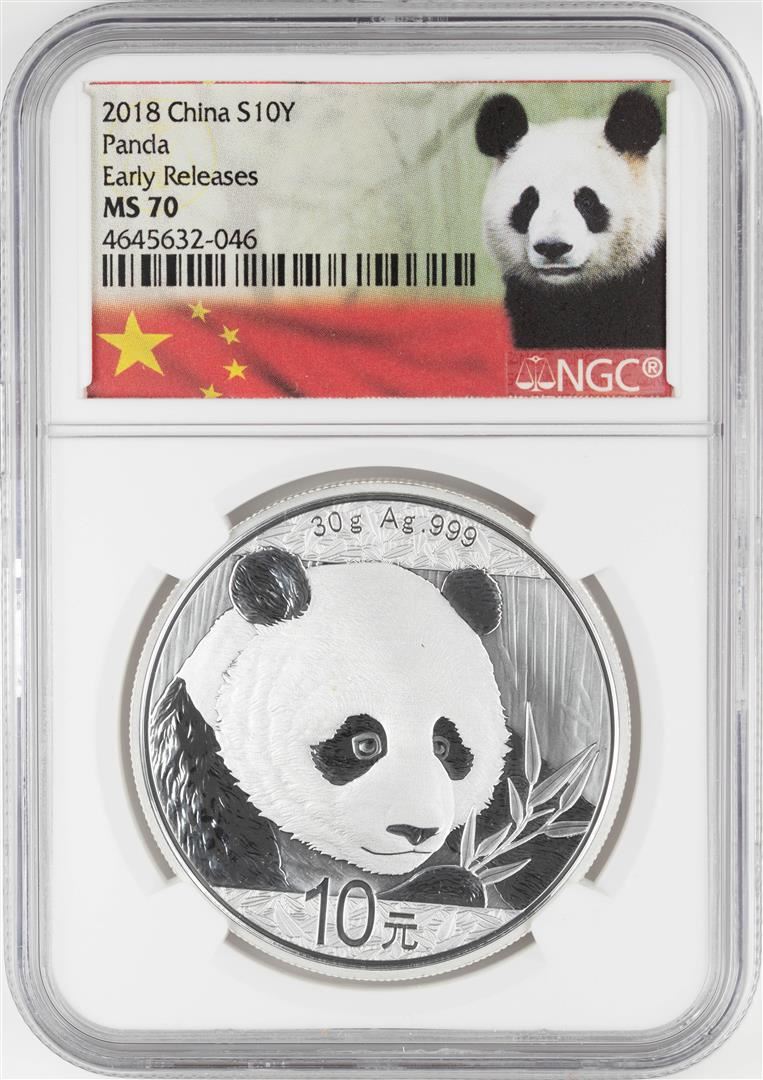 One 2018 10 Yuan China Panda Silver Coin NGC MS70 Early Releases White Core. NGC Certified.