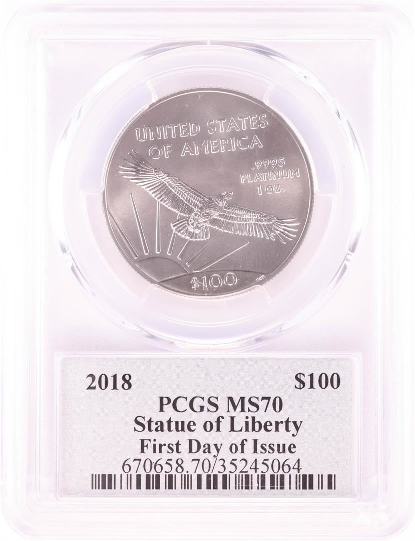 One 2018 $100 American Platinum Eagle Coin PCGS MS70 Cleveland Signature First Day of Issue. PCGS Graded.