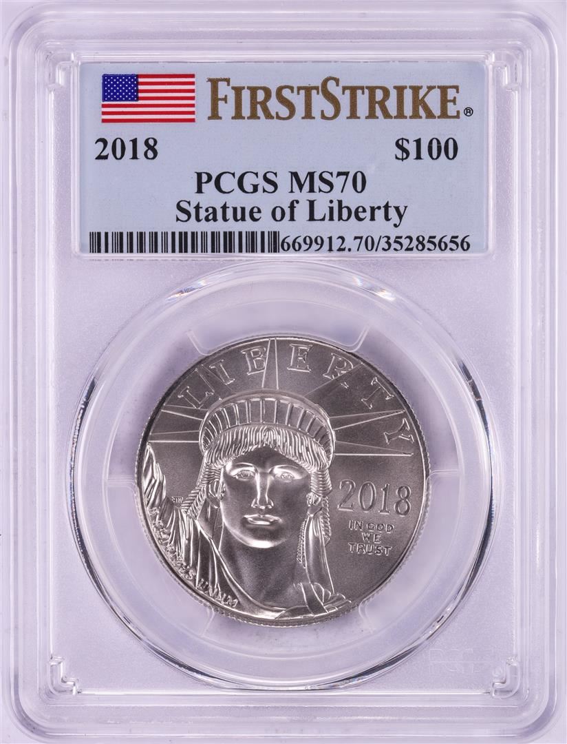 One 2018 $100 American Platinum Eagle Coin PCGS MS70 First Strike. PCGS Graded.