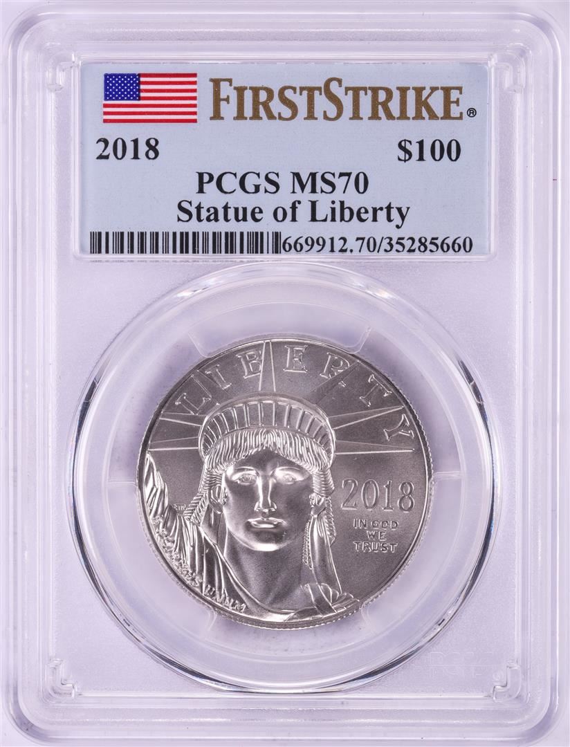 One 2018 $100 American Platinum Eagle Coin PCGS MS70 First Strike. PCGS Graded.