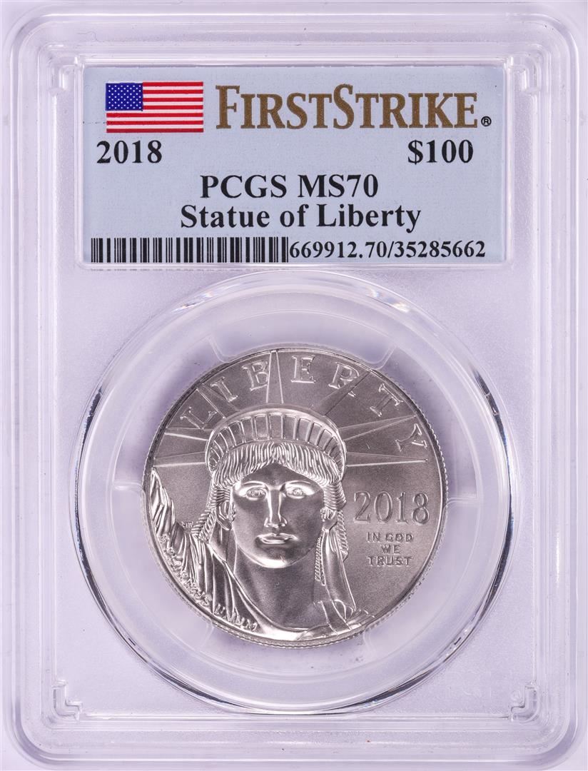 One 2018 $100 American Platinum Eagle Coin PCGS MS70 First Strike. PCGS Graded.
