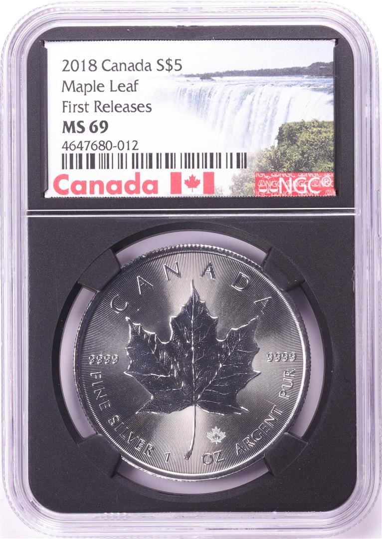 2018 $5 Canada Maple Leaf Silver Coin NGC MS69 First Releases