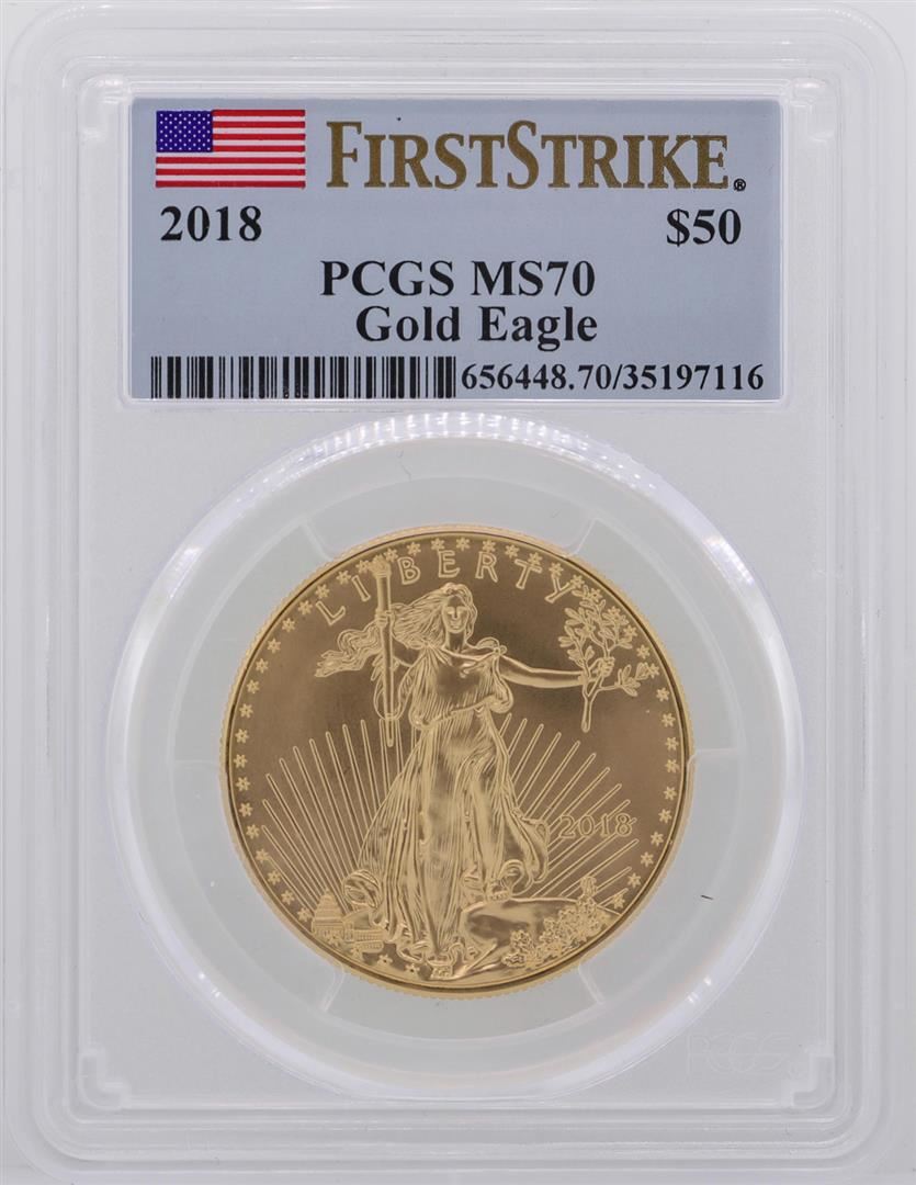 One 2018 $50 American Gold Eagle Coin PCGS MS70 First Strike. PCGS Graded.