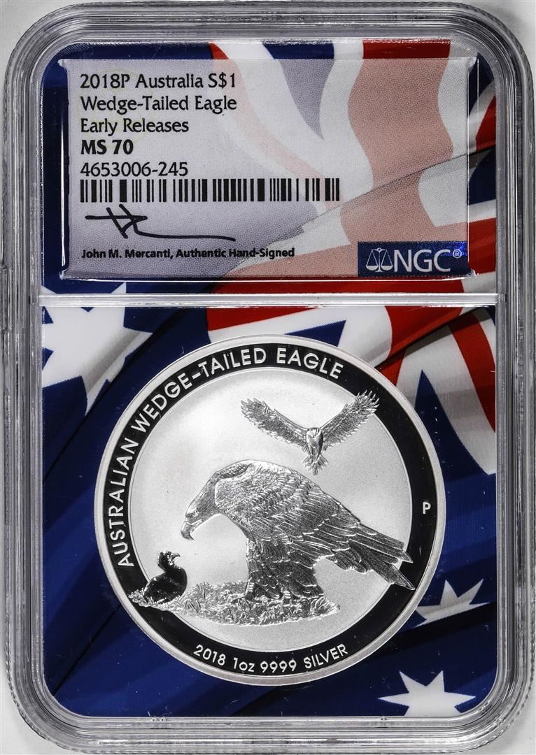 2018 Australia $1 Wedge-Tailed Eagle Silver Coin NGC MS70 Mercanti Signed Early Releases