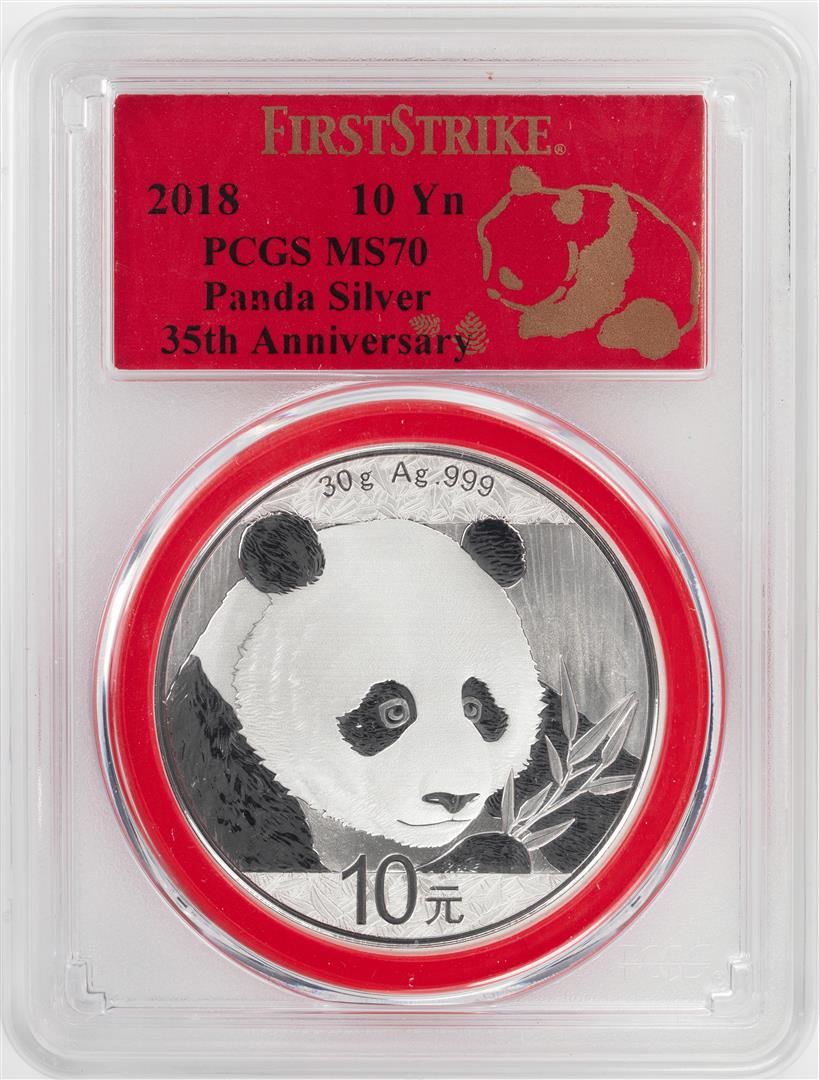One 2018 China 10 Yuan Panda Silver Coin PCGS MS70 First Strike. PCGS Graded.