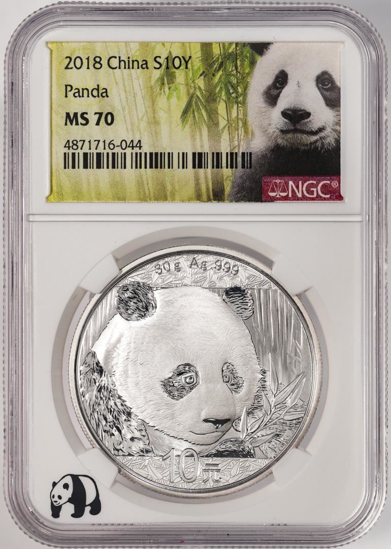 One 2018 China 10 Yuan Silver Panda Coin NGC MS70. NGC Certified.