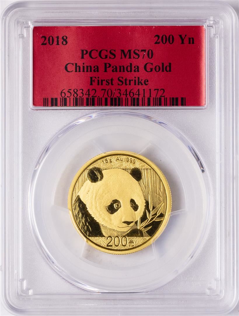 One 2018 China 200 Yuan Gold Panda Coin PCGS MS70 First Strike. PCGS Graded.