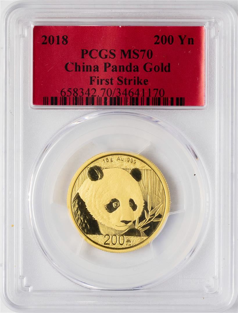 One 2018 China 200 Yuan Panda Gold Coin PCGS MS70. PCGS Graded.