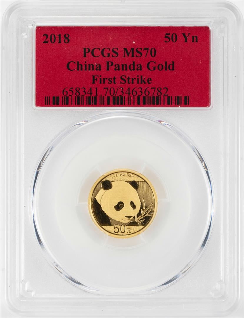 One 2018 China 50 Yuan Gold Panda Coin PCGS MS70 First Strike. PCGS Graded.