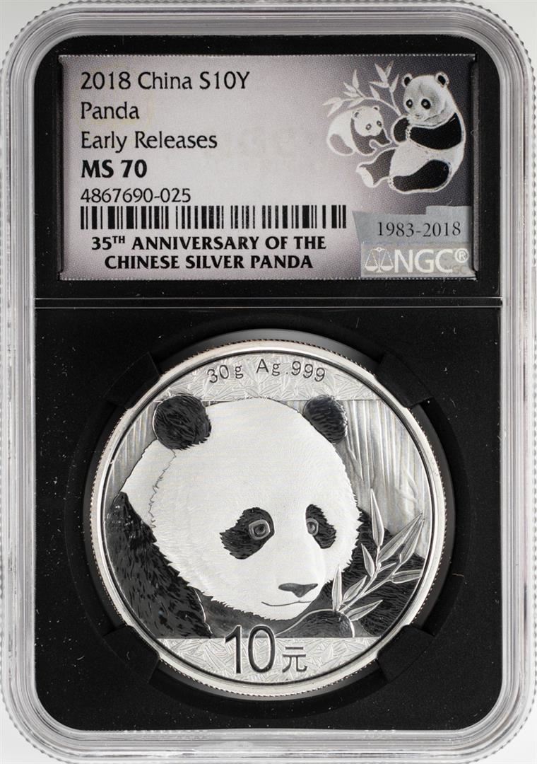 2018 China Panda Silver Coin NGC MS70 Early Releases Black Core