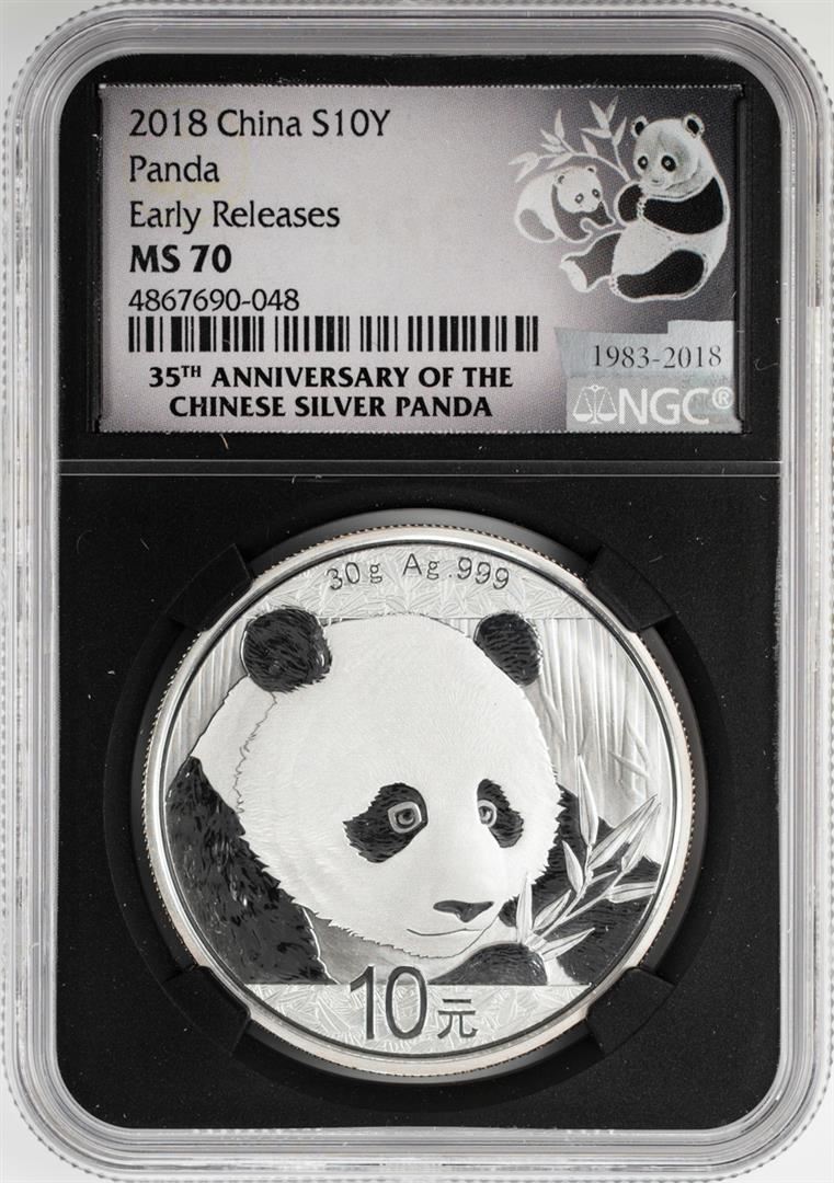 2018 China Panda Silver Coin NGC MS70 Early Releases Black Core