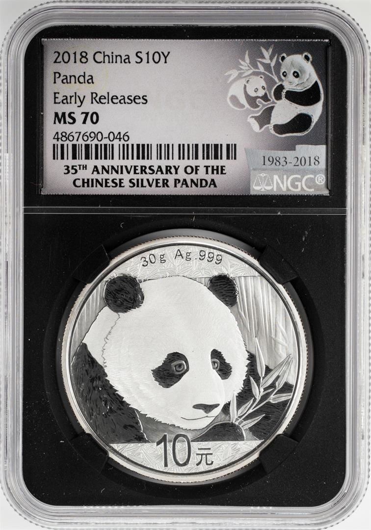 2018 China Panda Silver Coin NGC MS70 Early Releases Black Core