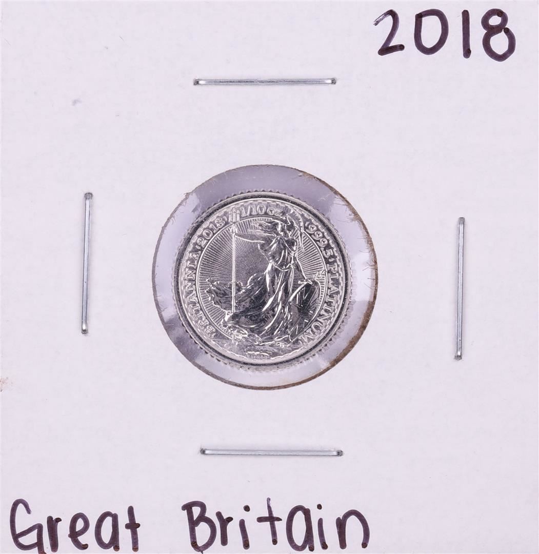 One 2018 Great Britain 10 Pounds 1/10 oz Platinum Coin.