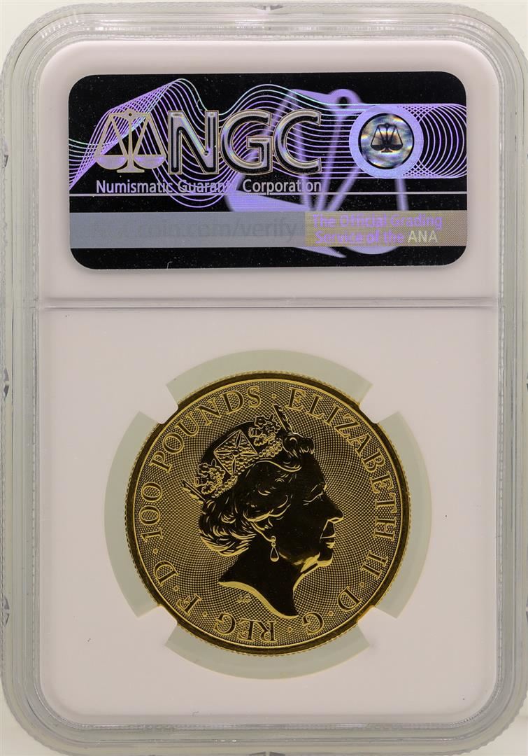 One 2018 Great Britain 100 Pounds Black Bull of Clarence Gold Coin NGC MS69. NGC Certified.