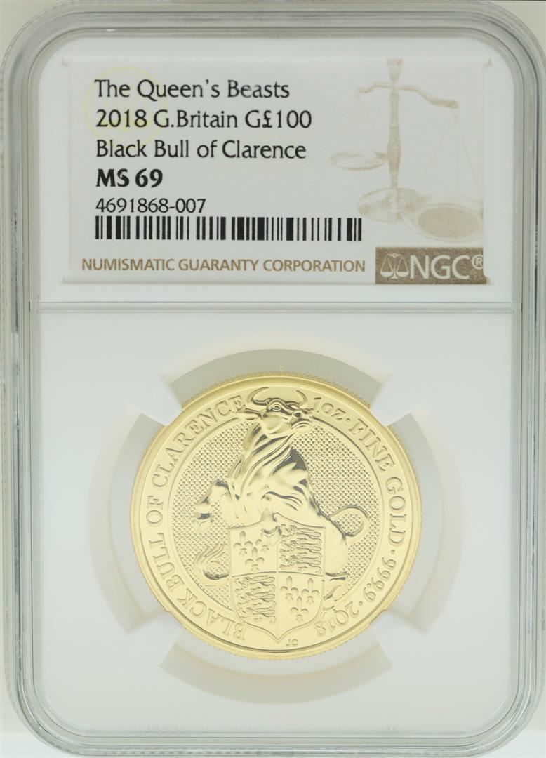 One 2018 Great Britain 100 Pounds The Queens Beasts Gold Coin NGC MS69 . NGC Certified.