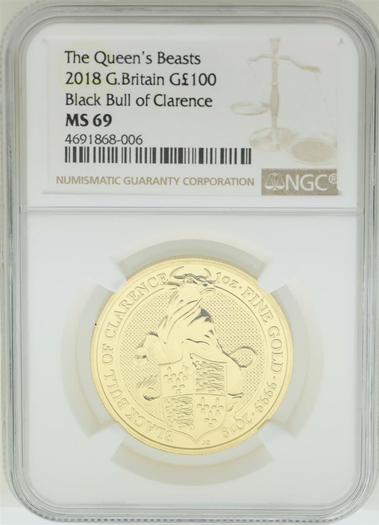 One 2018 Great Britain 100 Pounds The Queens Beasts Gold Coin NGC MS69 . NGC Certified.