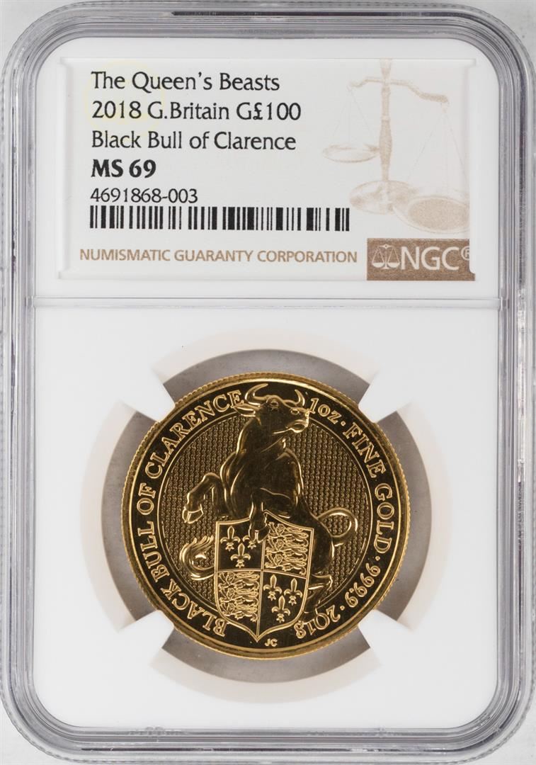 One 2018 Great Britain The Queens Beasts 100 Pounds Gold Coin NGC MS69. NGC Certified.