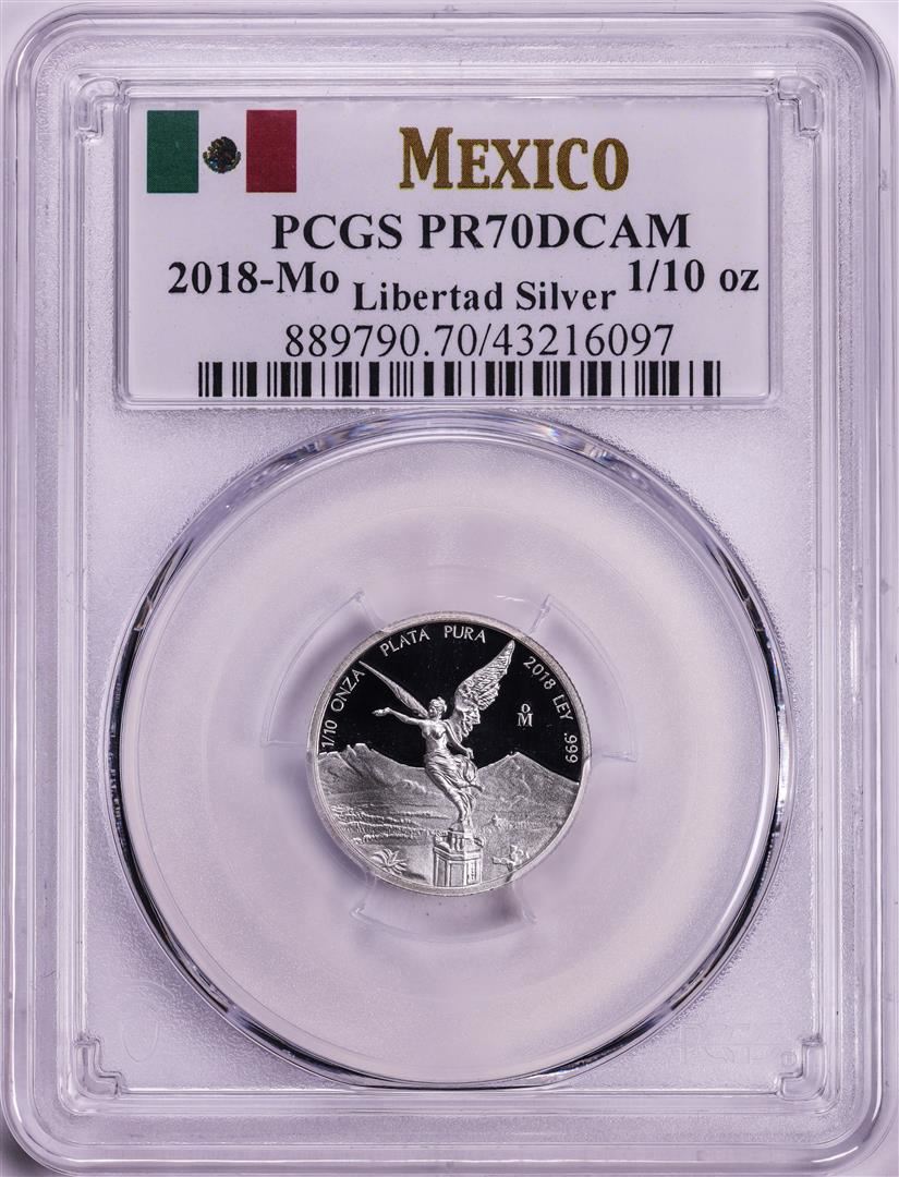 One 2018-Mo Mexico Proof 1/10 oz Silver Libertad Coin PCGS PR70DCAM. PCGS Graded.