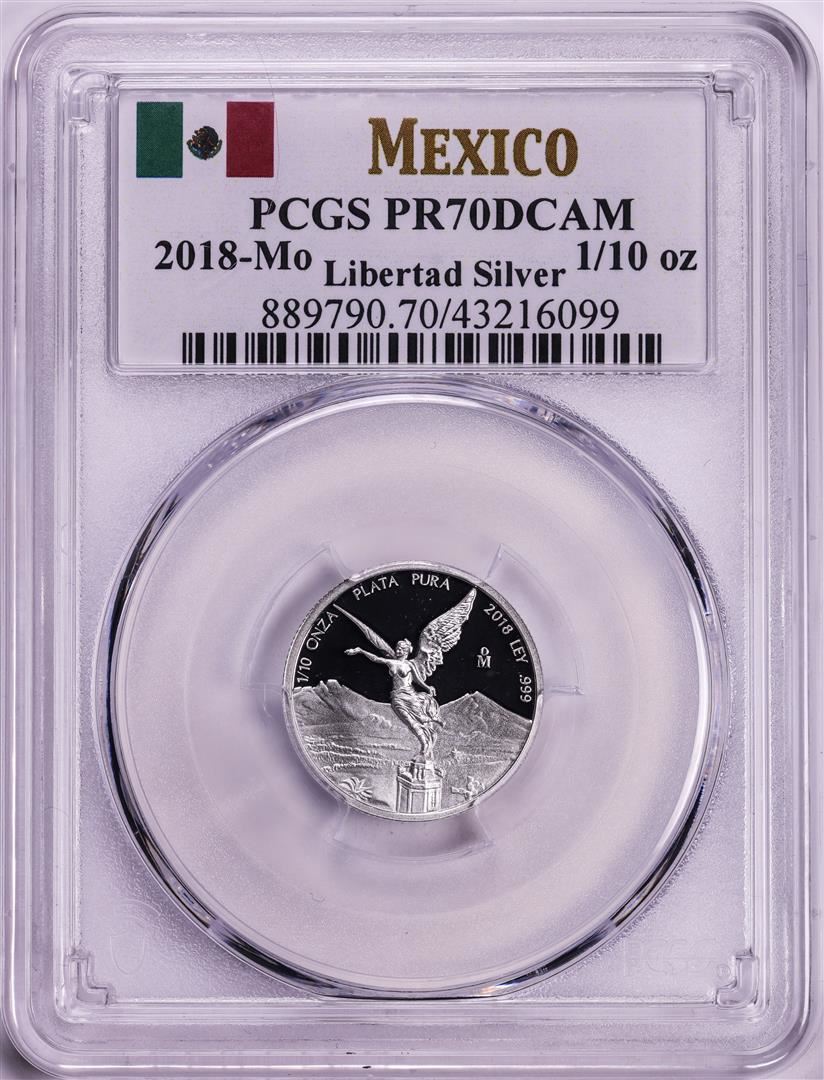 One 2018-Mo Mexico Proof 1/10 oz Silver Libertad Coin PCGS PR70DCAM. PCGS Graded.