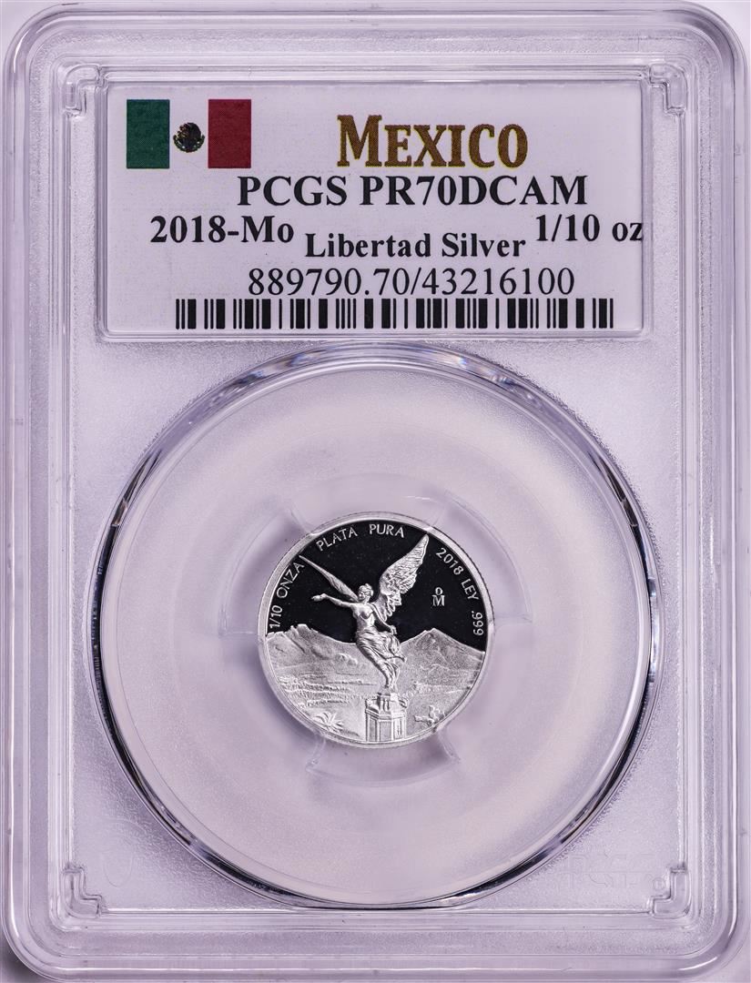 One 2018-Mo Mexico Proof 1/10 oz Silver Libertad Coin PCGS PR70DCAM. PCGS Graded.