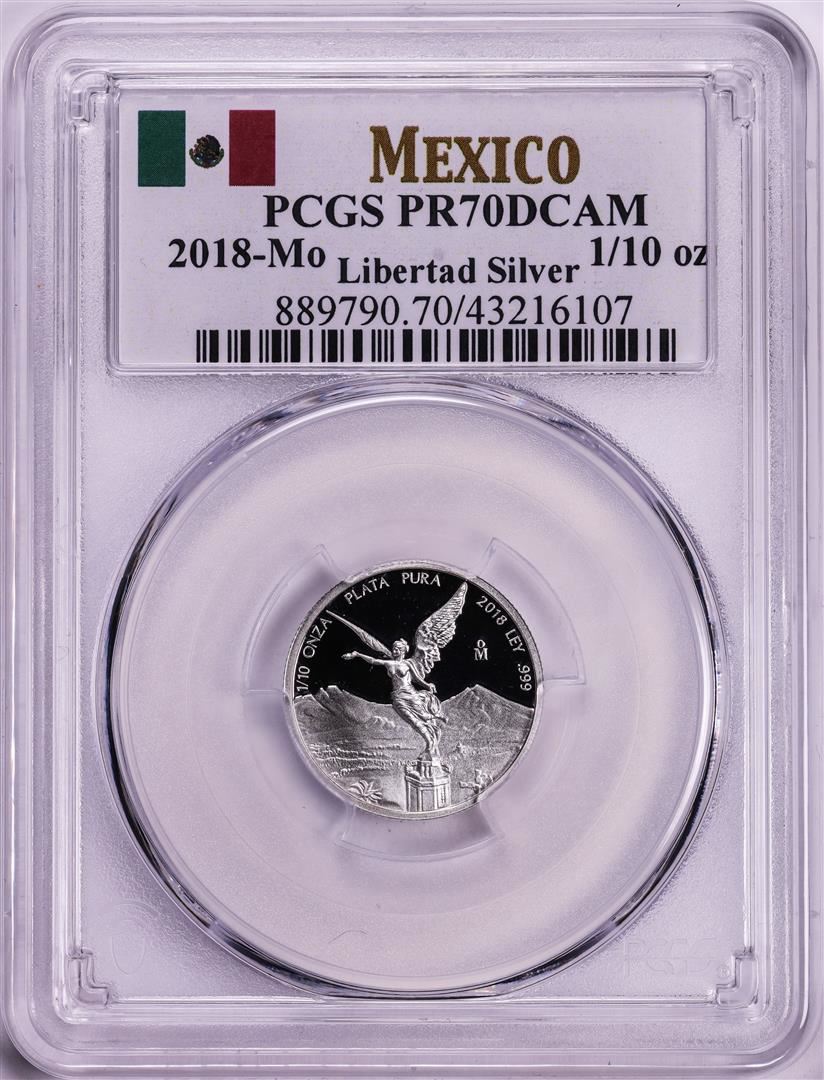 One 2018-Mo Mexico Proof 1/10 oz Silver Libertad Coin PCGS PR70DCAM. PCGS Graded.