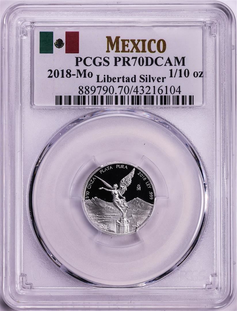 One 2018-Mo Mexico Proof 1/10 oz Silver Libertad Coin PCGS PR70DCAM. PCGS Graded.