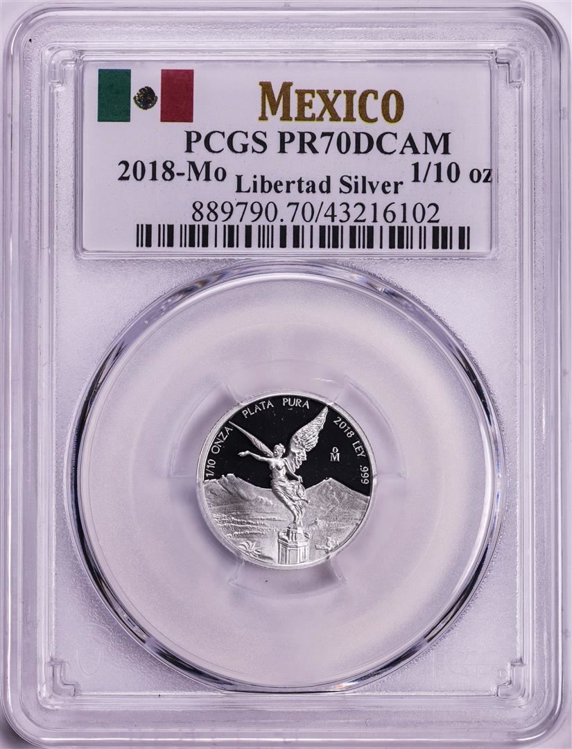 One 2018-Mo Mexico Proof 1/10 oz Silver Libertad Coin PCGS PR70DCAM. PCGS Graded.