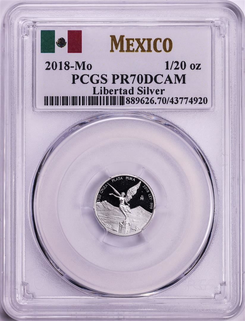 One 2018-Mo Mexico Proof 1/20 oz Silver Libertad Coin PCGS PR70DCAM. PCGS Graded.
