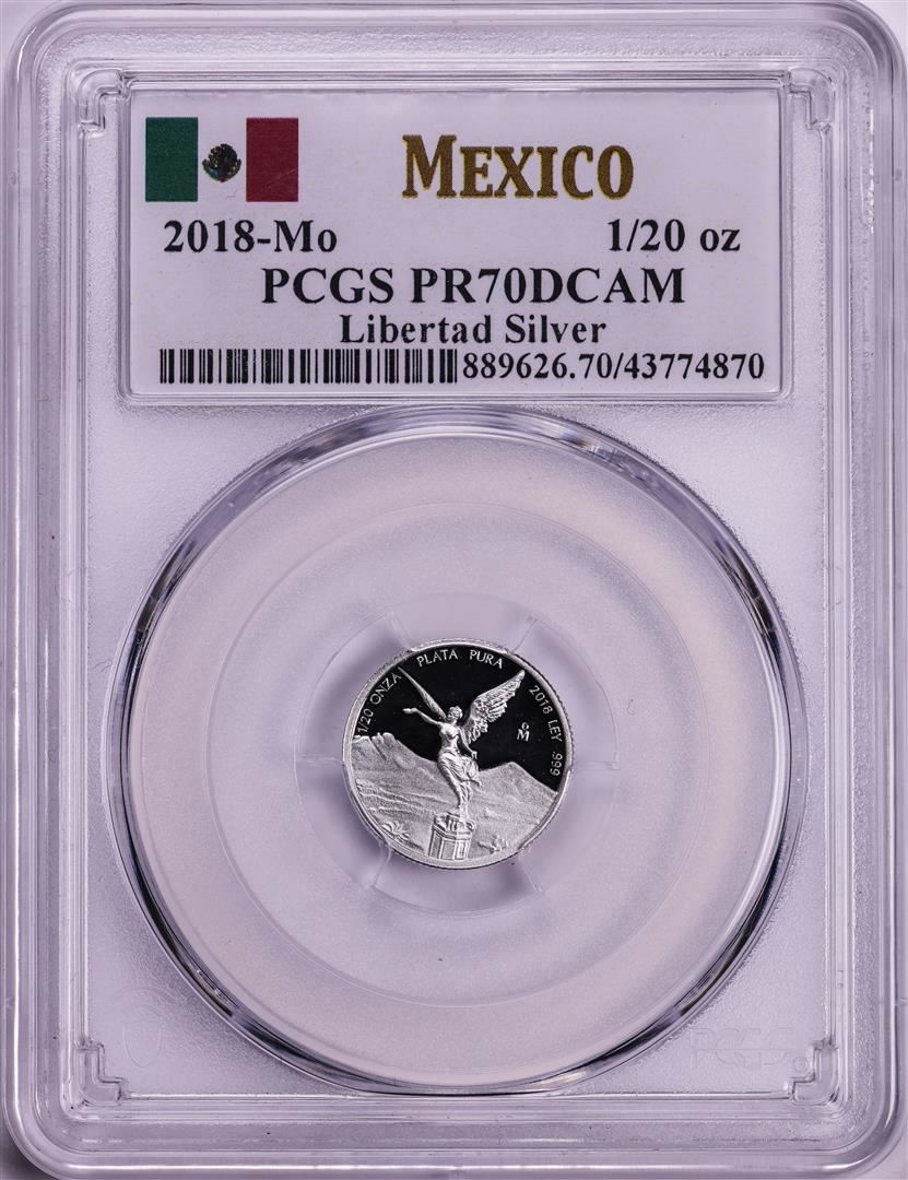 One 2018-Mo Mexico Proof 1/20 oz Silver Libertad Coin PCGS PR70DCAM. PCGS Graded.