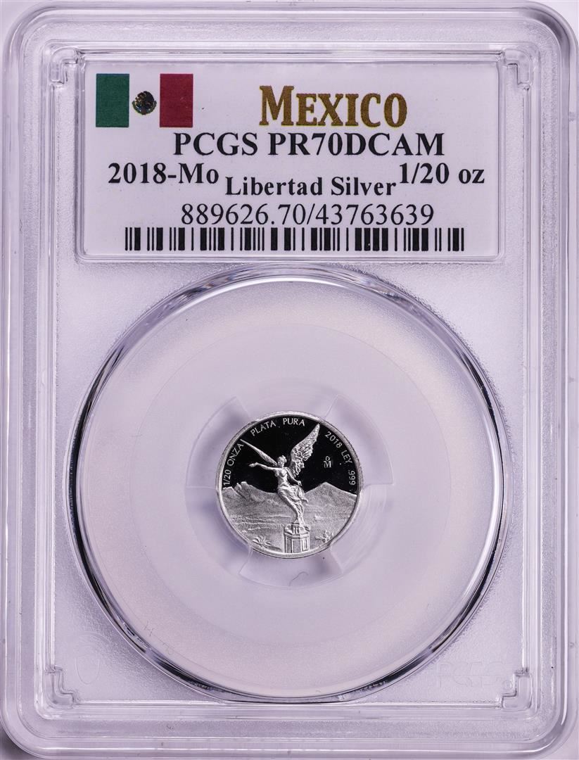 One 2018-Mo Mexico Proof 1/20 oz Silver Libertad Coin PCGS PR70DCAM. PCGS Graded.