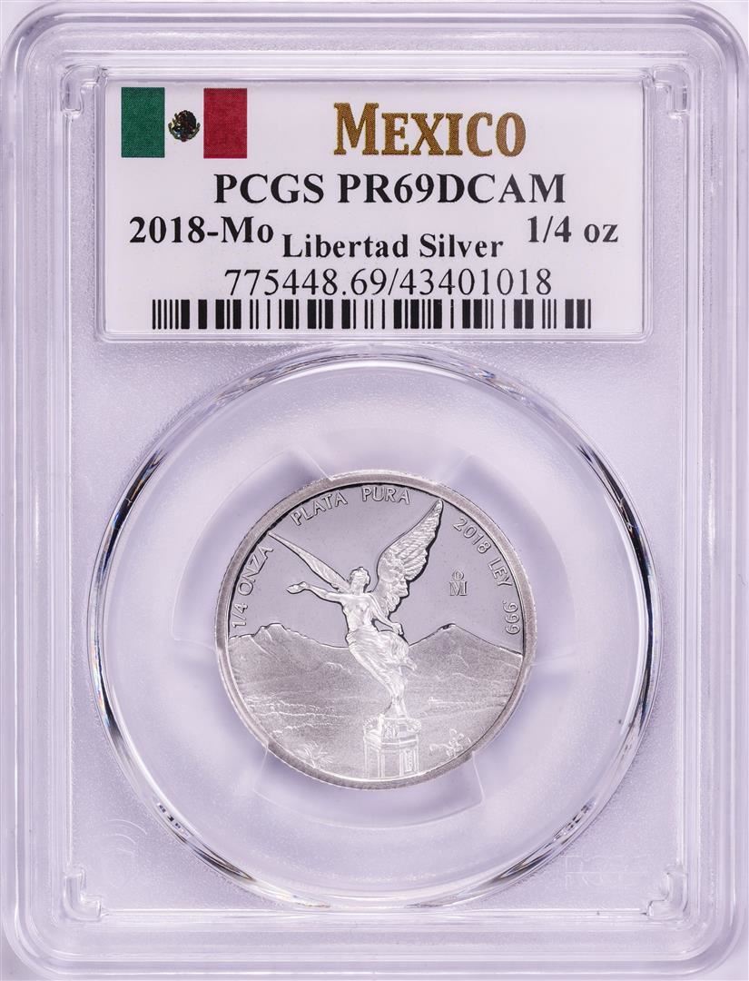 One 2018-Mo Mexico Proof 1/4 oz Silver Libertad Coin PCGS PR69DCAM. PCGS Graded.