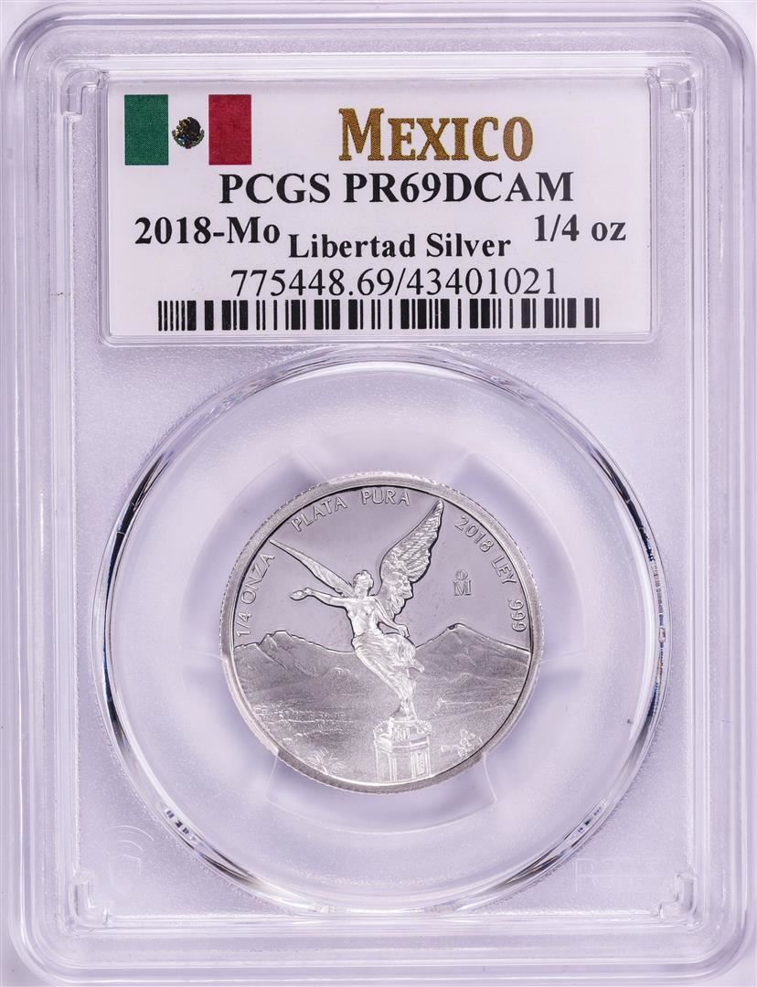 One 2018-Mo Mexico Proof 1/4 oz Silver Libertad Coin PCGS PR69DCAM. PCGS Graded.