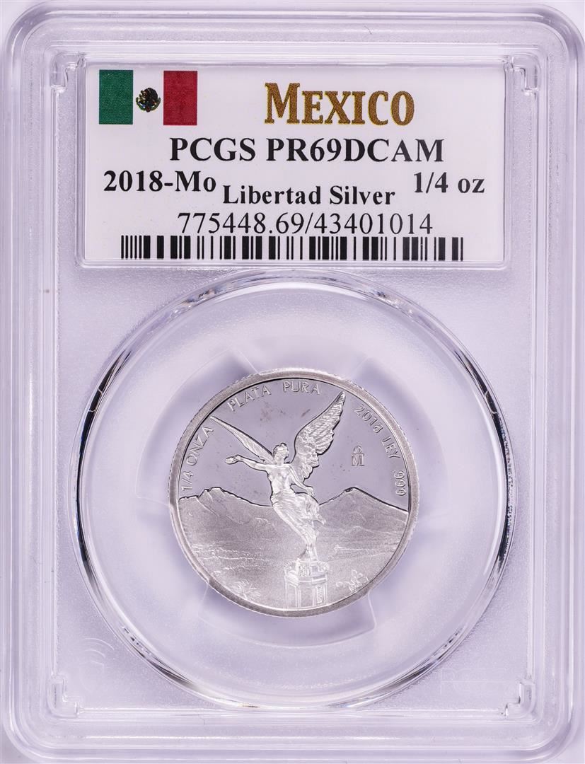 One 2018-Mo Mexico Proof 1/4 oz Silver Libertad Coin PCGS PR69DCAM. PCGS Graded.