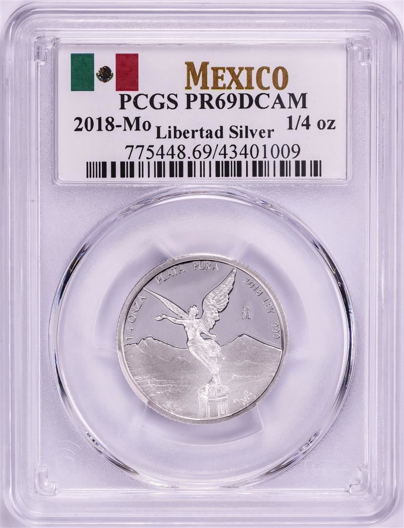 One 2018-Mo Mexico Proof 1/4 oz Silver Libertad Coin PCGS PR69DCAM. PCGS Graded.