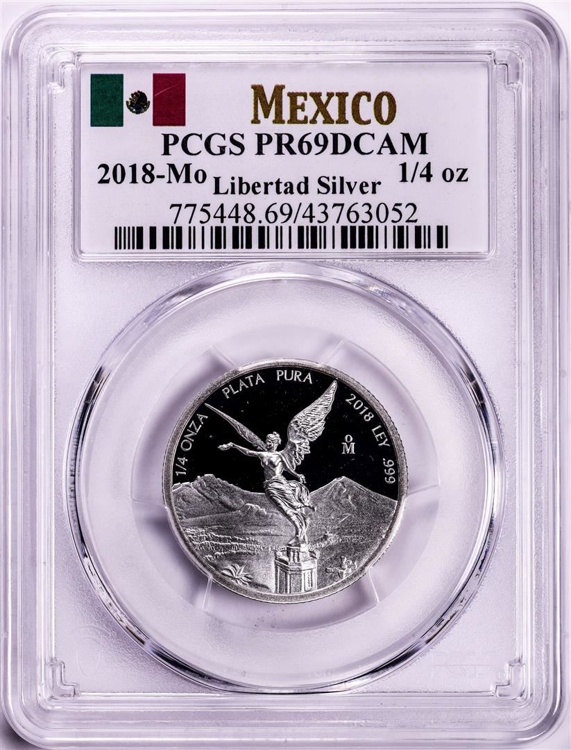 One 2018-Mo Mexico Proof 1/4 oz Silver Libertad Coins PCGS PR69DCAM. PCGS Graded.